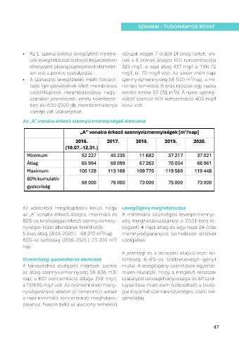 az „A” vonalra érkező átlagos, maximális és A minimális szükséges levegőmennyi-