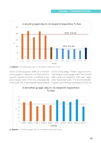 2. diagram: A mosatlan gyapjú olaj- és vízmegtartó kapacitása %-ban.